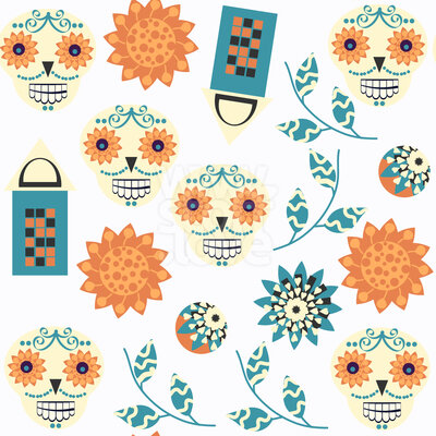 Sugar skulls : Seamless pattern with sugar skulls and Suns.