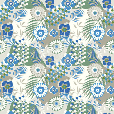 Festival Of Summer Flowers: Allover print design with plant leaf and flower elements.