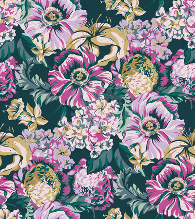 Lilies and Midnight Flowers: Vintage floral background of Midnight Flowers, Lily, Poppy And Hydrangeafor.